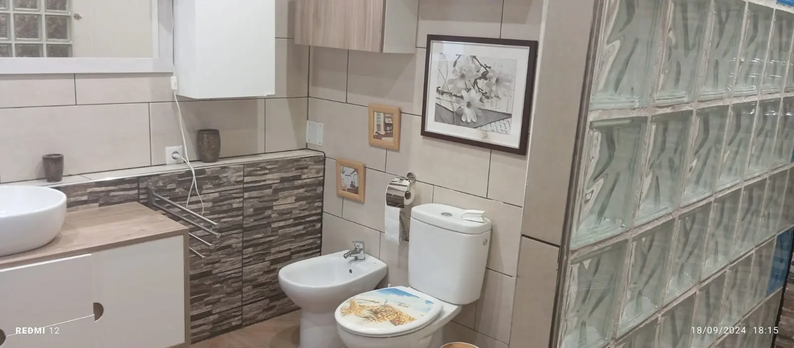 Casa La Francesa cuenta con un baño completo, equipado y pensado para ofrecer comodidad durante toda la estancia. Es un espacio funcional y cuidado con detalle, perfecto para que los huéspedes dispongan de todo lo necesario. Su diseño práctico facilita el día a día tanto en estancias cortas como largas.